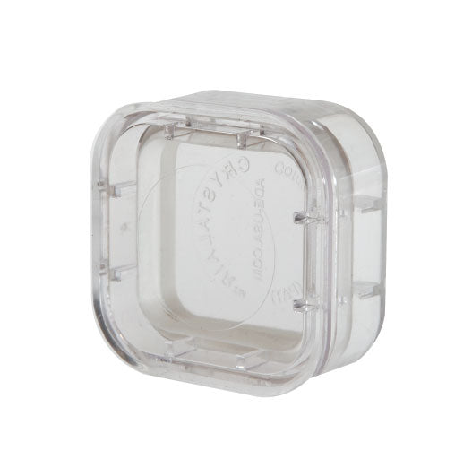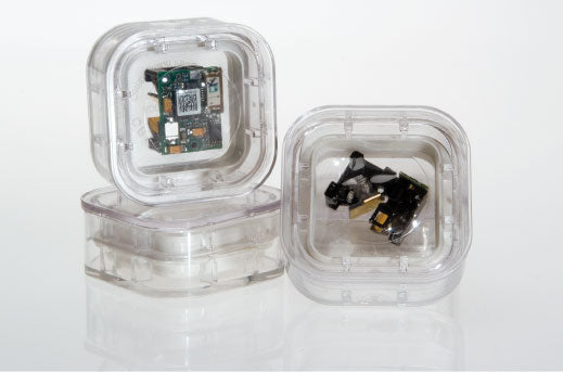 The Mini Compression Pack is our smallest, most compact standard pack. It provides fully transparent protection for small fragile products from storage, handling, and shipping damage. The product is gently suspended and immobilized between two rings of clear, inert, polyurethane film. The rings are mounted within a clear, re-closable, injection molded container that features a positive lock closure. This allows you to visually indentify and inspect products with out exposing them to the outside elements. Useable surface area is 1.125” x 1.125” x 0.625” oval - Outer dimensions are 1.75” x 1.75” x 0.75”.